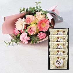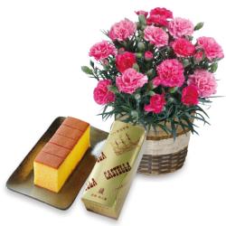 カーネーション「さくらもなか」と長崎異人堂カステラの人気商品のセットです。