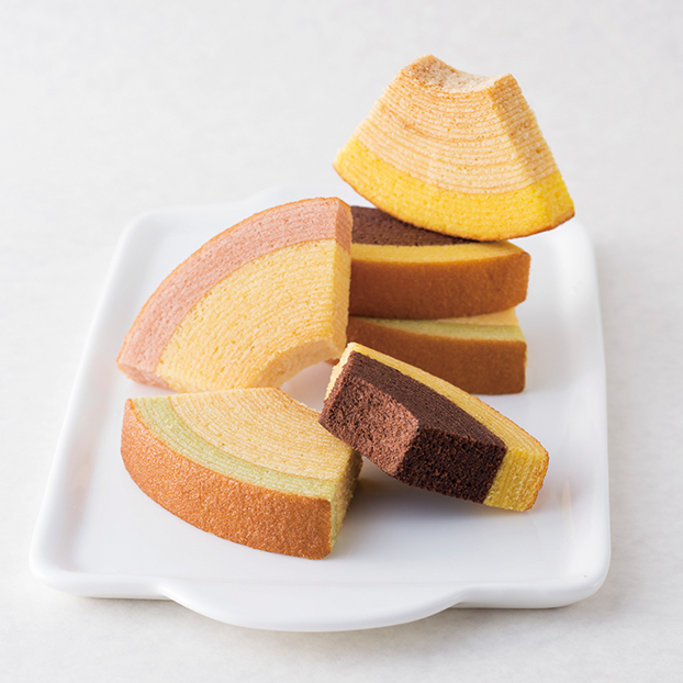 一層ずつ丁寧に焼き上げた生地はしっとりした口当たりで深い味わいが広がります。果汁を加えた生地と2層に仕上げました。