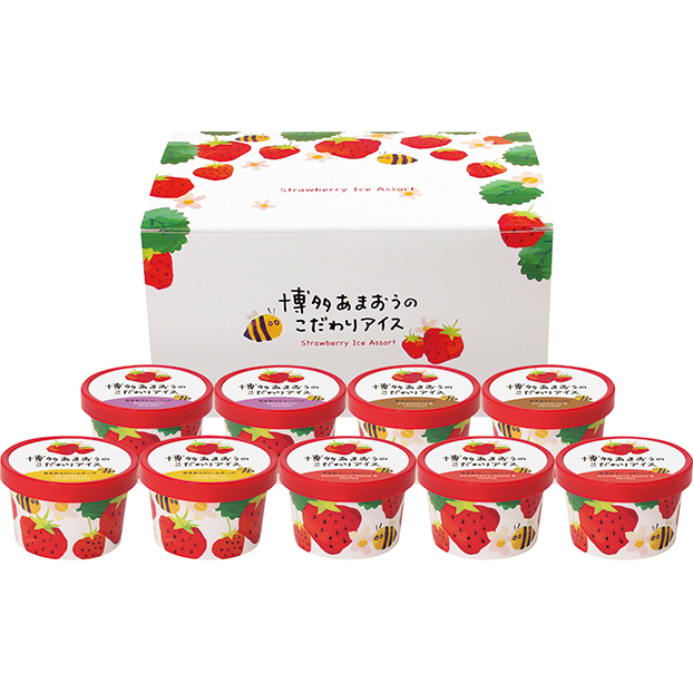 あまおうソース&バニラ58ml×3、あまおう&ショコラ76ml×2、あまおうクリームチーズ・あまおうシャーベット各78ml×各2