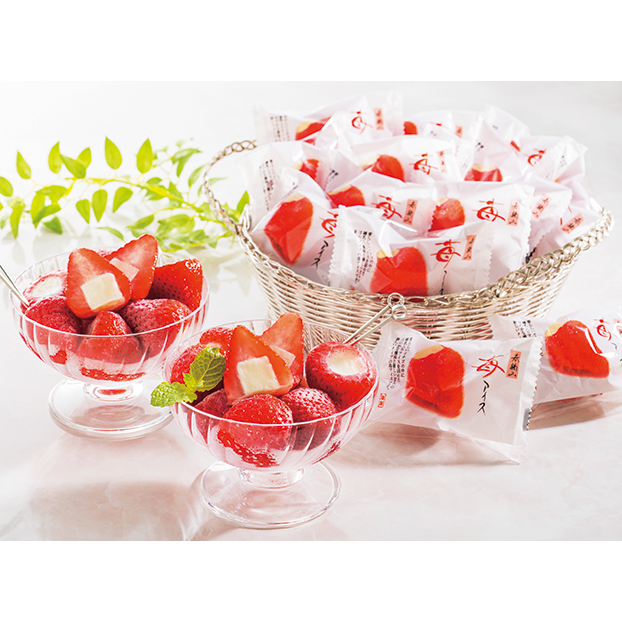 甘酸っぱい苺の中に練乳入りアイスを詰め込んだ苺のアイス。苺と練乳入りアイスが絶妙にマッチした人気の苺アイスデザートです。