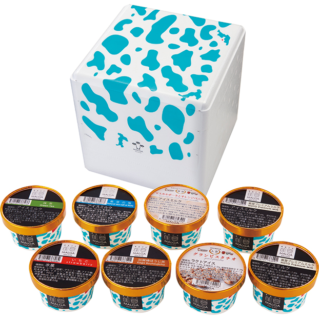 能登プレミアムミルク90ml×2、グランピスタチオ・3種のナッツとリコッタチーズ~柑橘とバニラ~・能登の塩・抹茶・いちご・加賀棒ほうじ茶各90ml×各1