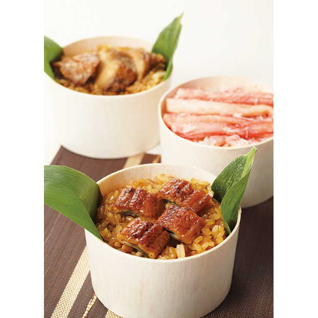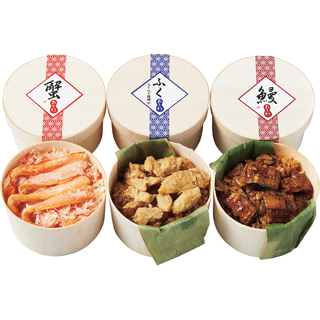 レンジでチンするだけ。ホカホカのおこわに舌鼓。ふぐ、うなぎ、かにの3つの味のおこわをお届けします。食べたい分だけレンジで温められて便利です。