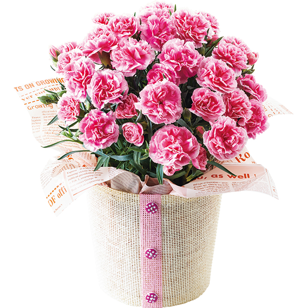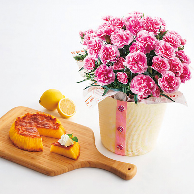 カーネーション鉢植え「ティーパーティ」と瀬戸内レモンで爽やかさを加えたカステラのセットです。